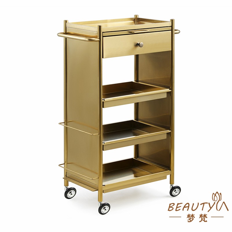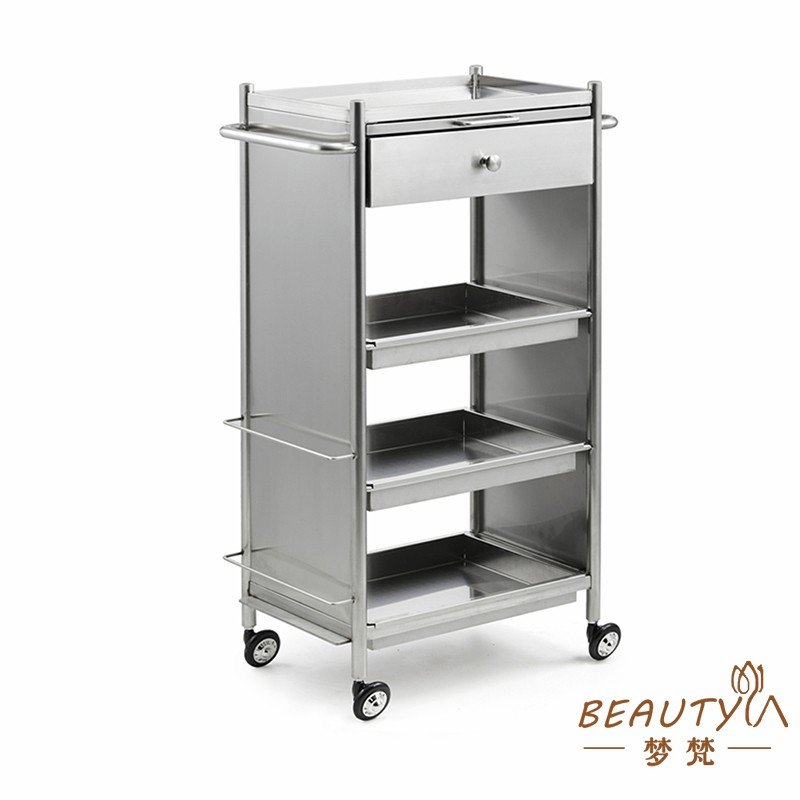 New hair stainless steel cart Hair salon tool cart Folding two countertop trolley Hair salon hot dyeing tool cabinet