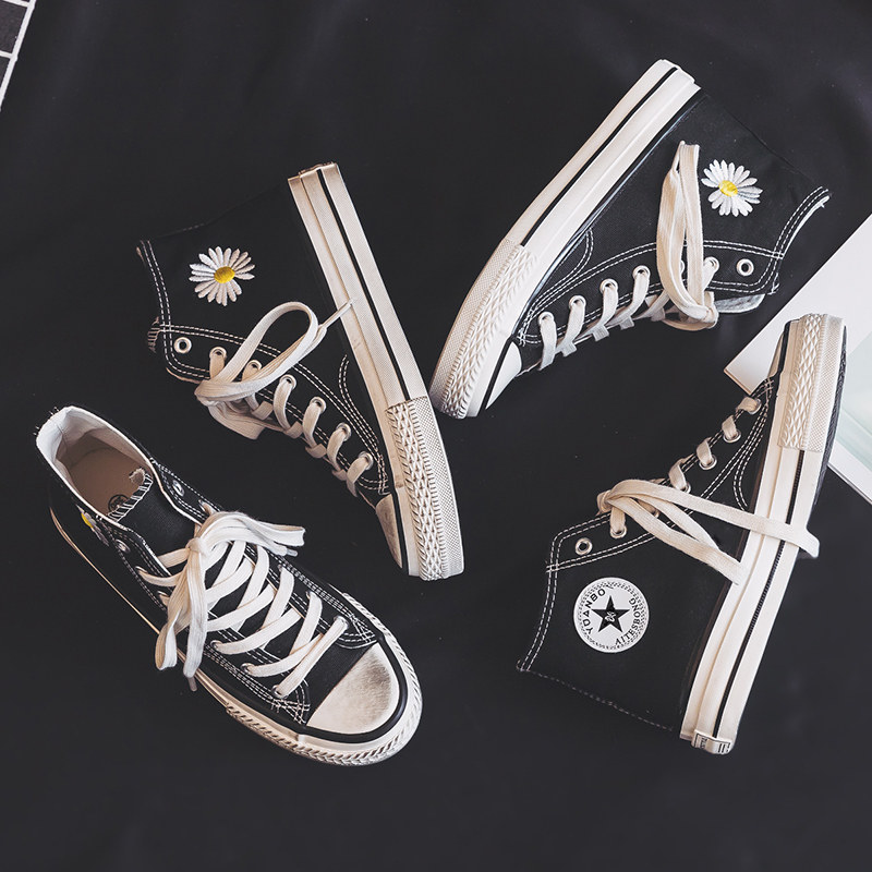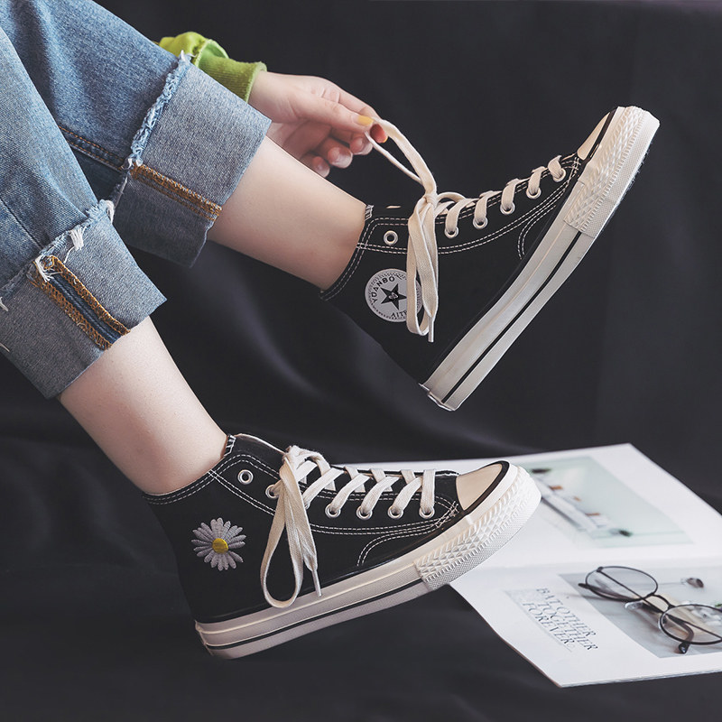 Quan Zhilong small daisy high-top canvas shoes women's 2022 summer new Korean version all-match cloth shoes student shoes tide shoes