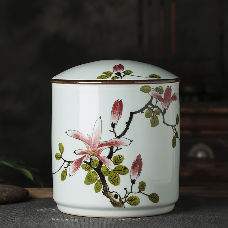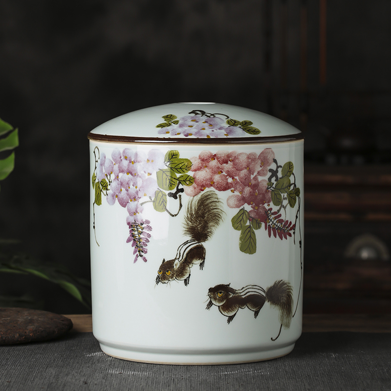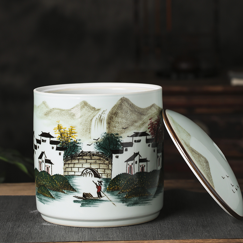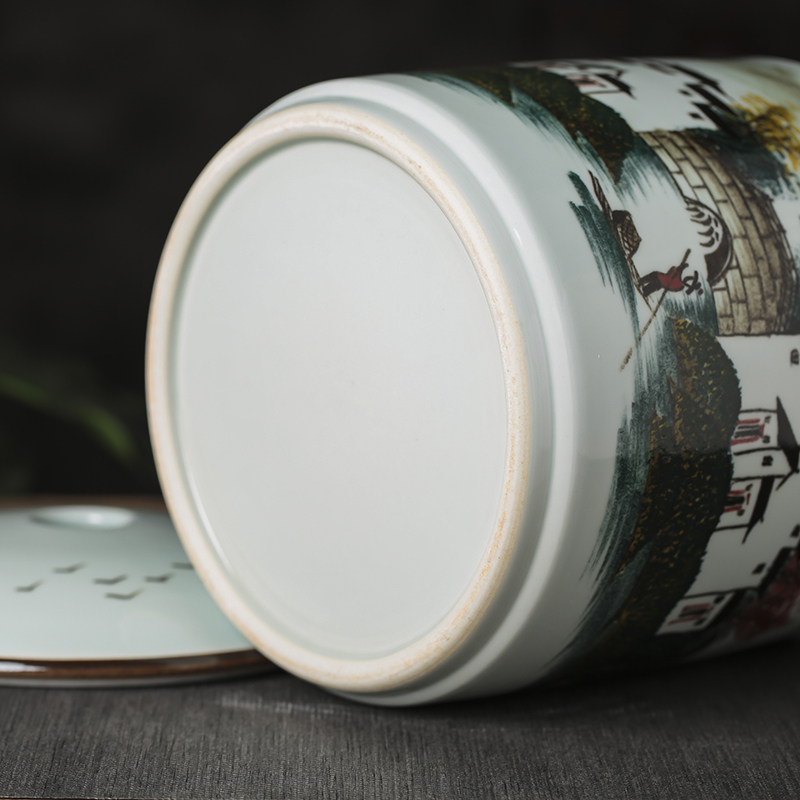 Jingdezhen Ceramic Leaf Jars Hand Drawing Large Number Seven Subpie Pu-erh Tea Leaf Jjar Tea Cake Box Sealed Storage Tea Barn Woke Up Tea Jar