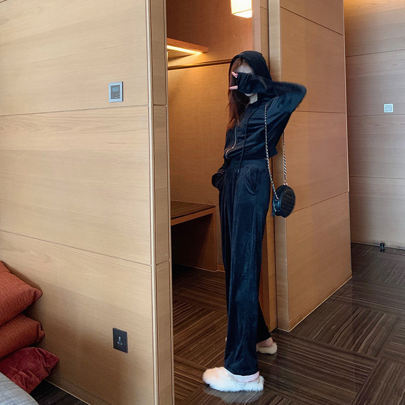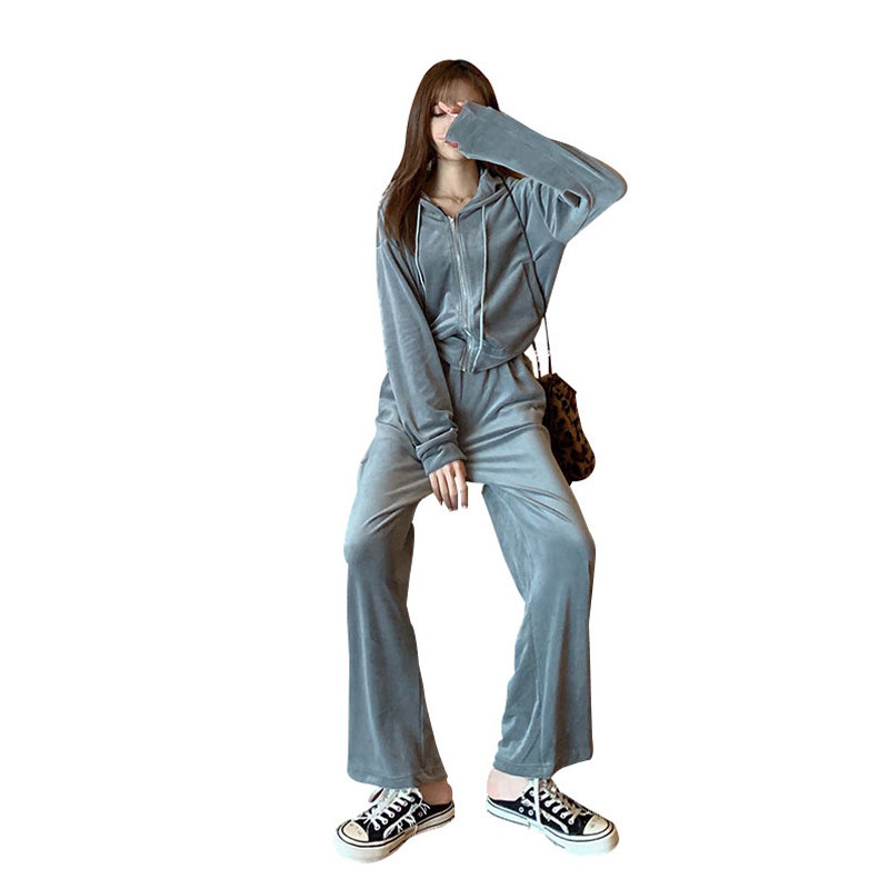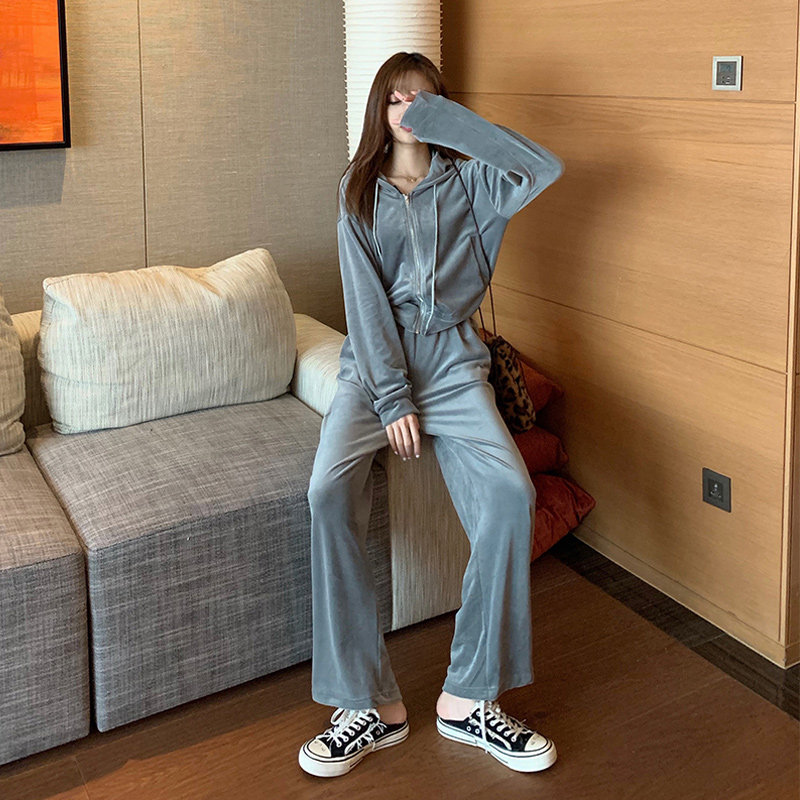 Autumn 2021 New Sports Leisure Suit Women's Age Reduction Fashion Salt Sweet Fried Street Wide Leg Pants Two-Piece Set