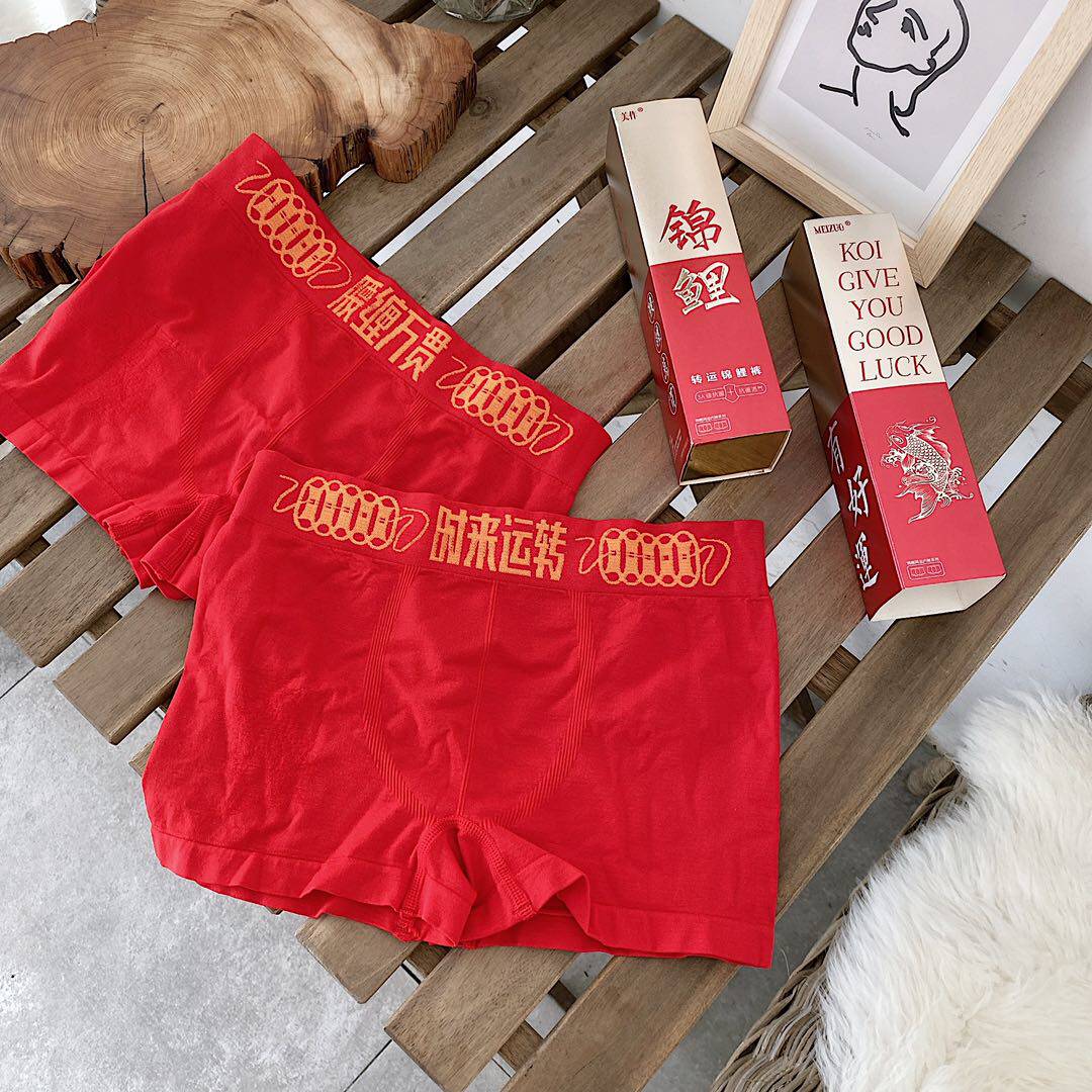This Life Year Forwarding Brocade Carp Graphene Briefs Antibacterial Bottom Crotch Pants Mid-Waist Lady Triangle Pants Couple Men's Flat Corner