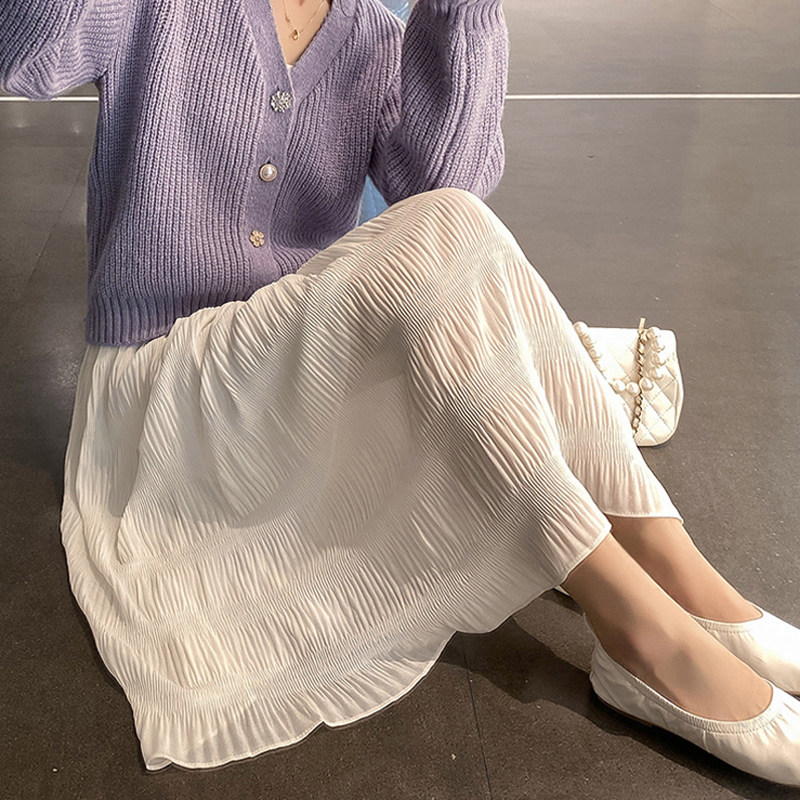 Pregnant women's skirt spring tide mom wears a long version of a pleated chiffon belly dress fashion dress summer