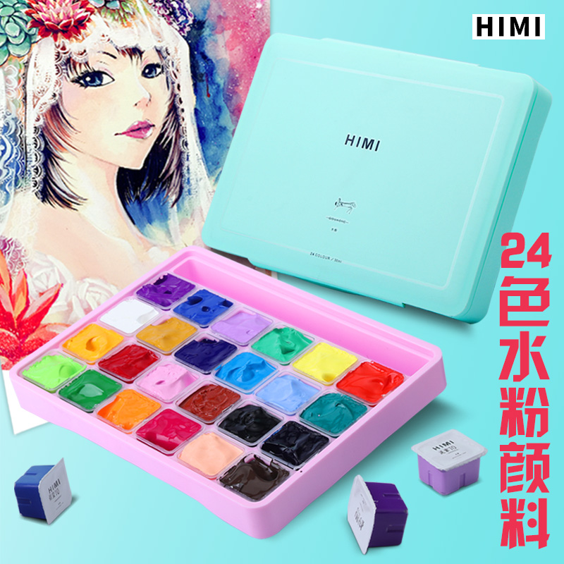 himi Mia 30ml 24 color jelly pigment set for art students with children's small box convenient package of water powder pigment color Mia Toolbox specialized painting color