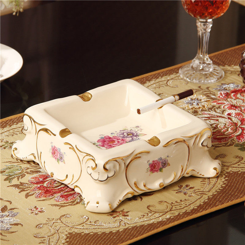 Eurostyle ivory porcelain Ashtray Fashion Individuality handcarved Fancy Tabletop Creative Ceramic Tobacco Cylinder Living-room Pendulum
