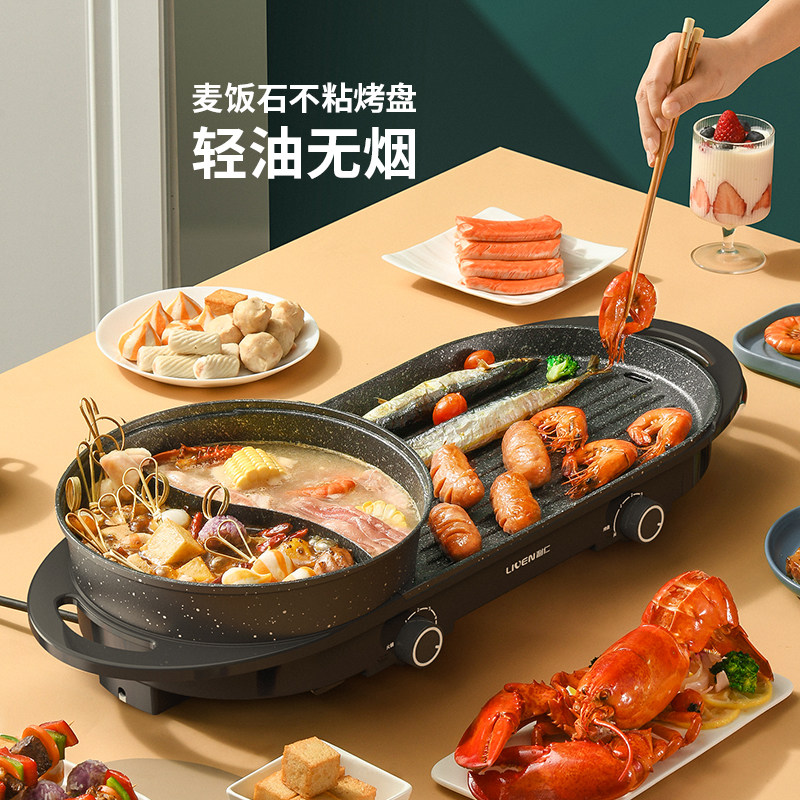 Liren grill pot hot pot grill one pot grill grill shabu one pot home grill fish plate electric oven grill grill meat