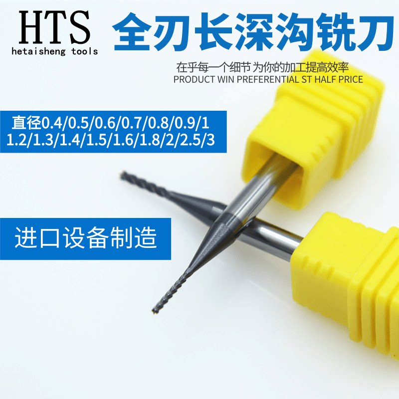 CNC small diameter deep groove lengthened full-length tungsten steel milling cutter 0 4 0 5 0 6 0 8 1 2 2 5 3mm