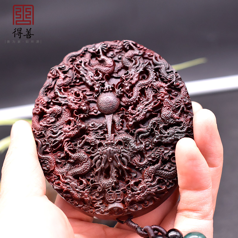 Small leaf red sandalwood pendant mahogany nine dragons play pearl wood carving play handle piece wooden craft gift decoration solid wood car ornament
