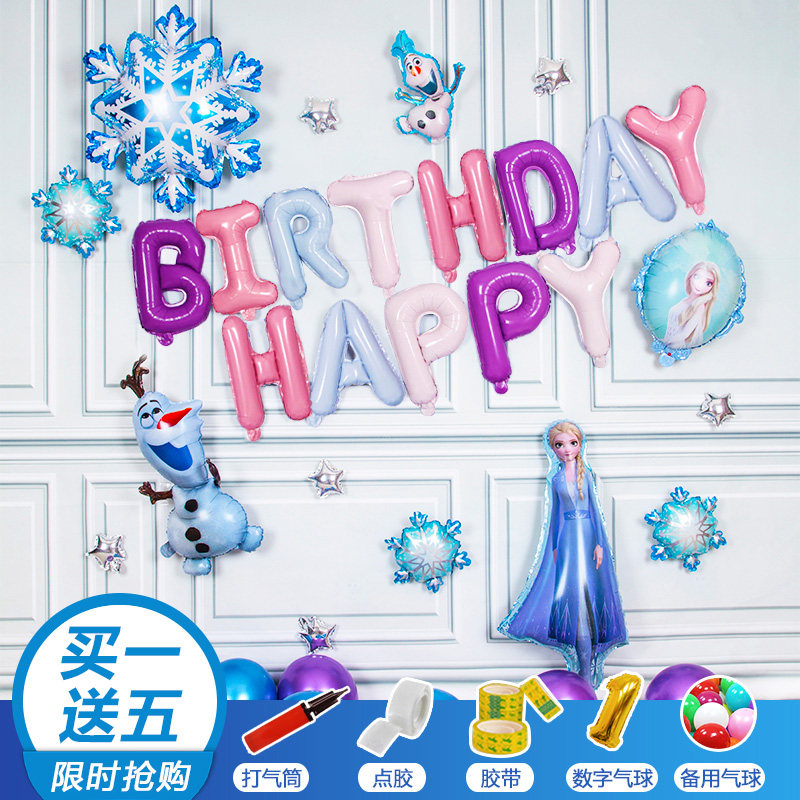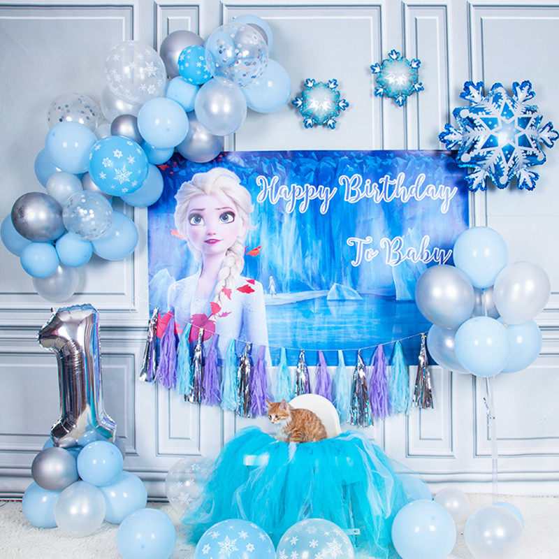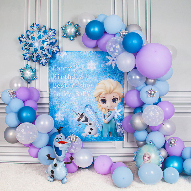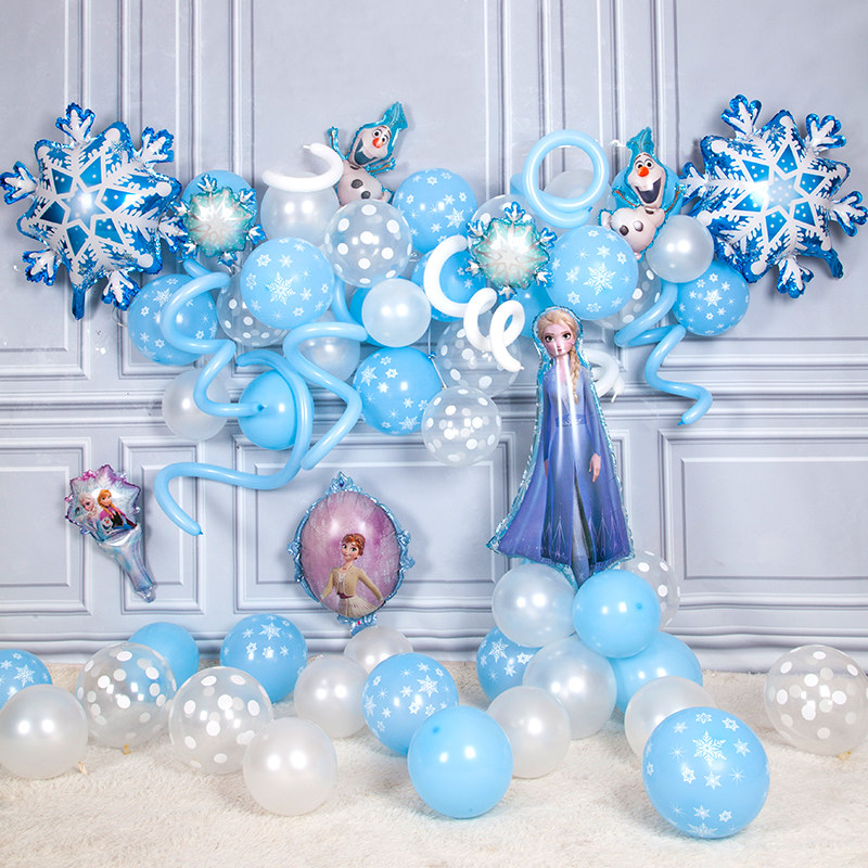 Ice Chic Edge Elsa Themed Birthday Party Decoration Living Room Background Wall Plan Girl Ana Balloon Chain Arrangement