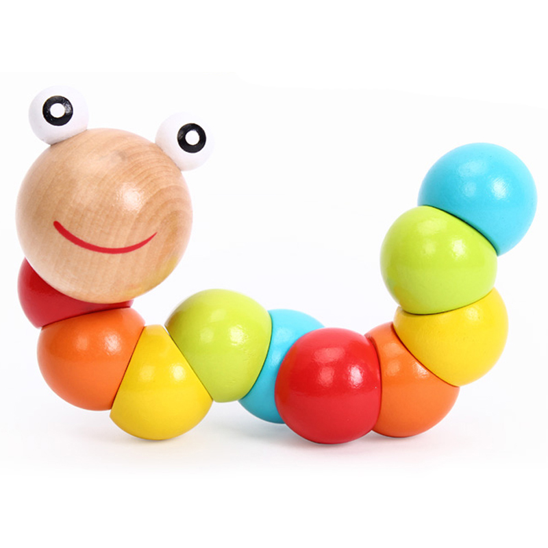 Infant Early Education Puzzle Toy 100 Changed Mouldy Caterpillar Twist and smooth and smooth wooden hand grip toy