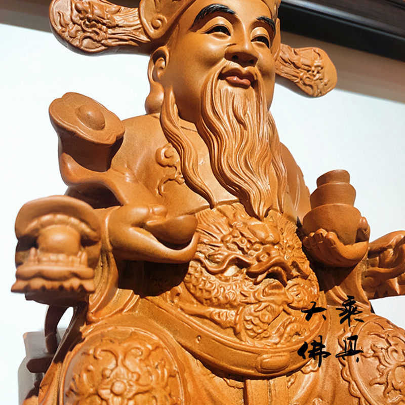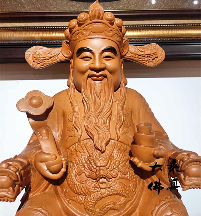 12 inch 19 inch camphor wood God of wealth sitting on a dragon chair like a home lucky craft gift decoration decoration shop gift statue