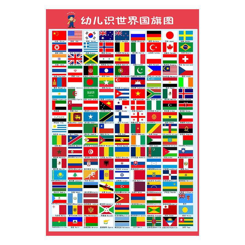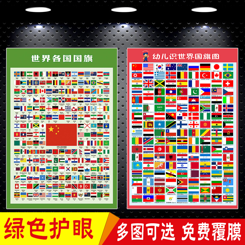 Flags of the world's countries hanging paintings children's cognitive enlightenment education early childhood education posters home wall self-adhesive drawings