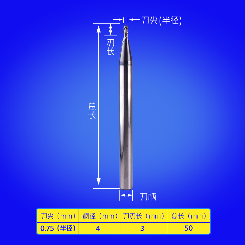 Ball head milling cutter imported tungsten steel alloy HRC50 metal milling cutter 0 75mm CNC engraving machine CNC engraving and milling cutter