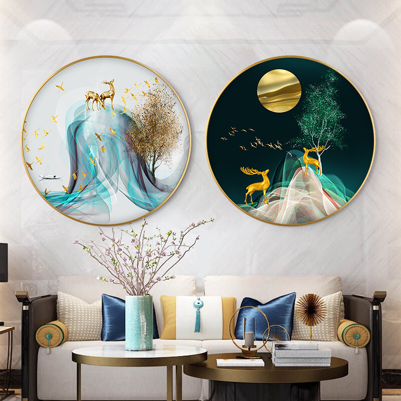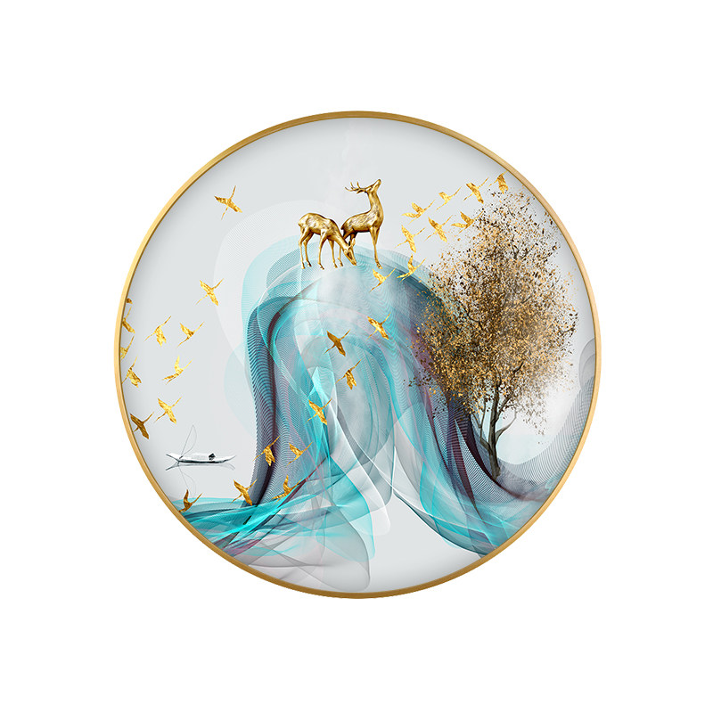 Entrance round crystal porcelain painting new Chinese-style corridor aisle decorative painting living room elk fortune tree dining room light luxury hanging painting