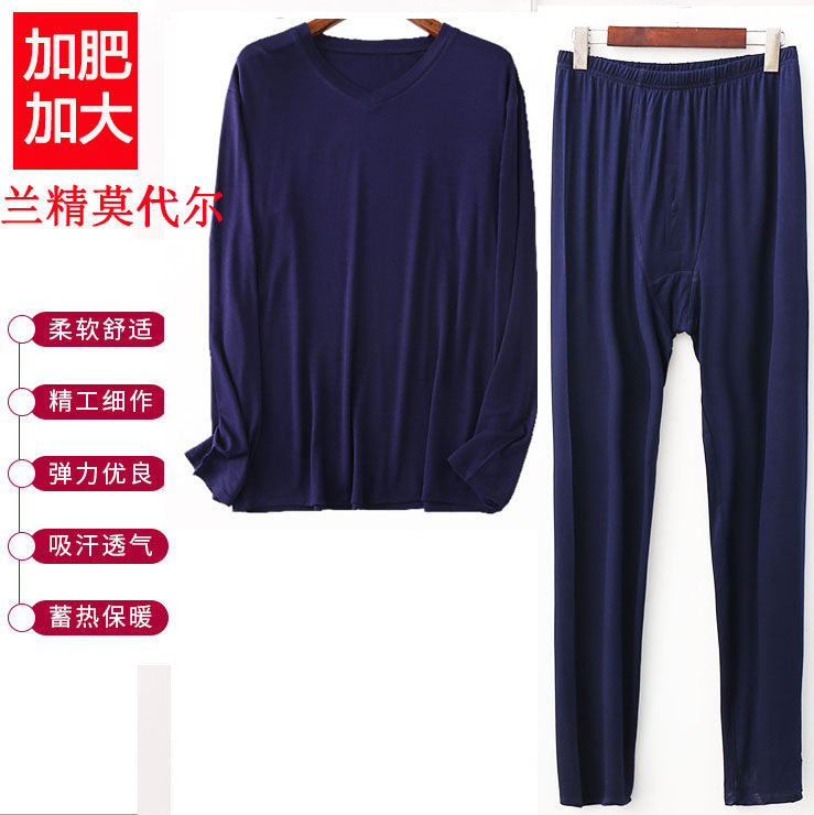 Plus fat plus size pajamas fat brother modal autumn clothes sanitary pants inner wear round neck bottoming thin section heating underwear