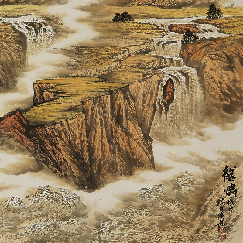 Tao Shengjing hand painting of the six - foot mountain water large banner of the Longquan Yellow River Golden Hawk Cheng auction H1016
