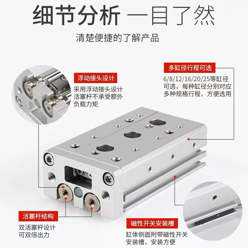 Precision belt guide rod sliding table cylinder HLS6 8 12 MXS8X10X20X30X40X50X75X100SA-Taobao
