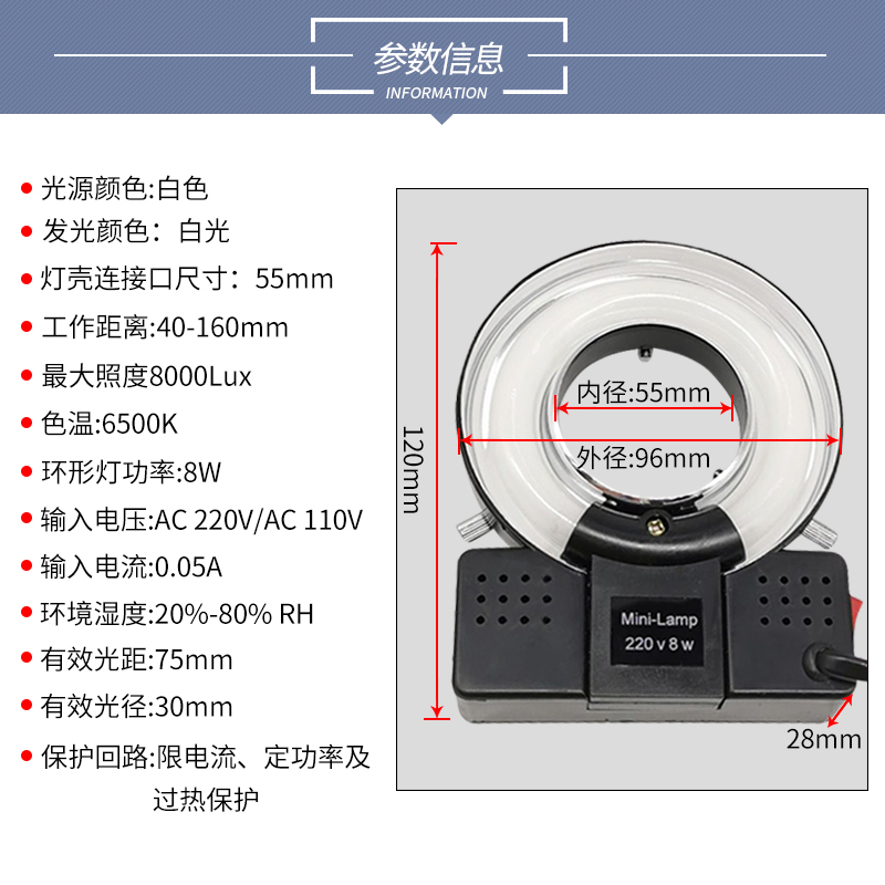 MiniLamp220V8W Soft light microscope ring fluorescent lamp Inner diameter 55MM Outer diameter 96MM light source Purple light white black lamp