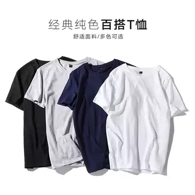 Summer men's short-sleeved T-shirt Solid color half-sleeved top T-shirt white bottoming shirt ins tide brand clothes trend men's clothing
