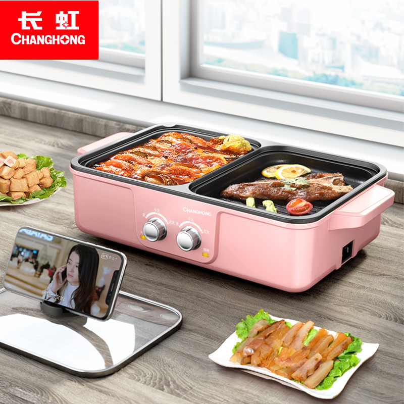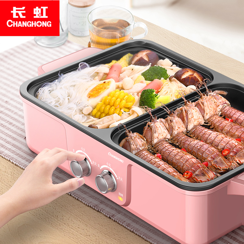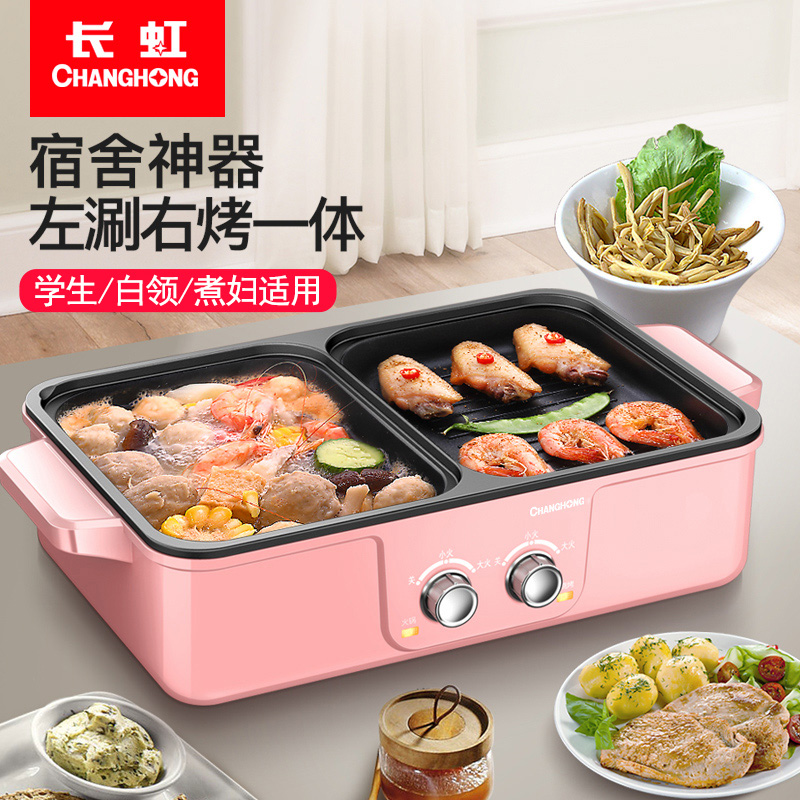 Long Iridescent Baking Integrated Pan Grilled Hot Pot Barbecue Dual-use Grilled Meat Pan For Home Frying Pan Electric Oven Electric Baking Pan