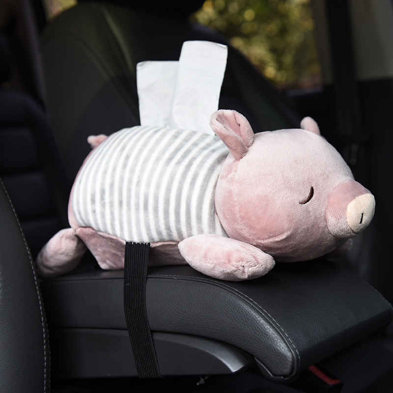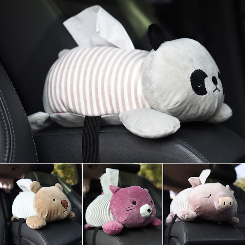 Car Towels Box Personality Cute Animal Armrest Box Extractable Toilet Paper Use Plush Car Universal Car Cartoon Paper Towels Bag