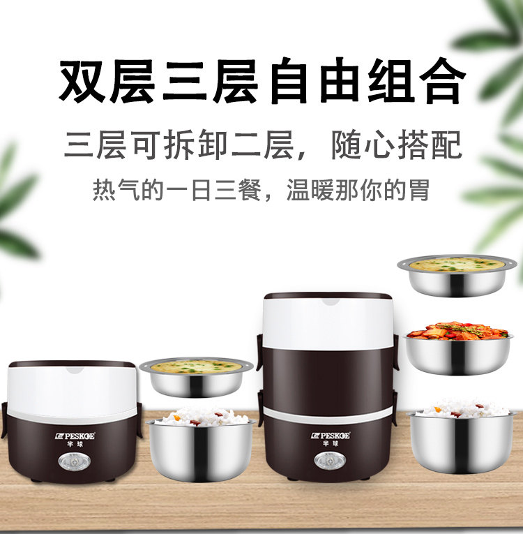 Hemispherical plug-in heating insulation lunch box electric lunch box office worker steaming rice artifact can self-heat automatically steaming lunch box
