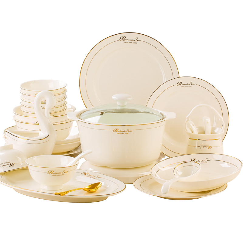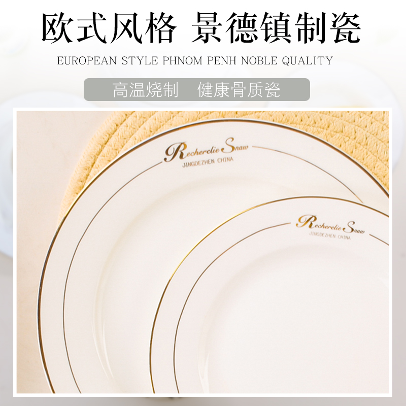 Inglinger Jingjingde Town light extravaganza Luxurious Ceramic Dish Suit Home Eat Rice Bone China Porcelain Bowl Tray Cutlery Cutlery