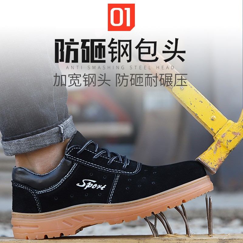 Labor insurance shoes men's summer breathable steel toe cap anti-smashing anti-piercing cowhide tendon bottom wear-resistant construction site protective work shoes