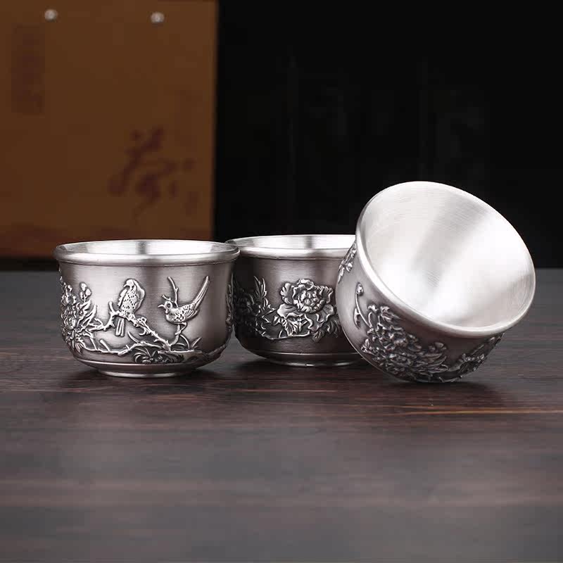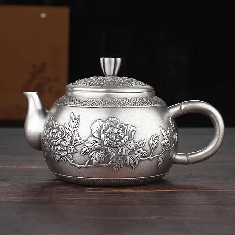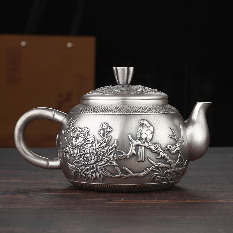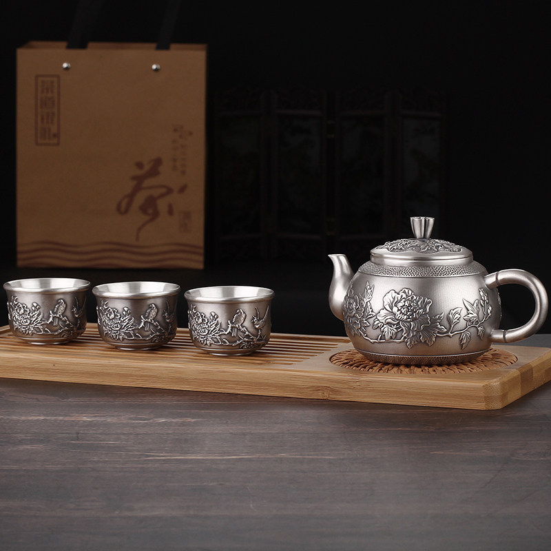Flowers bloom and silver 999 kung fu tea set pure silver pinch teapot cup hand filament silver pot gift
