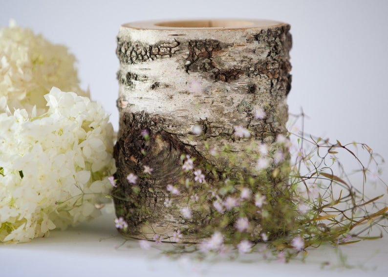 Birch log flower pot creative decoration solid wood flower pot landscape succulent pot flower arrangement container mini home decoration