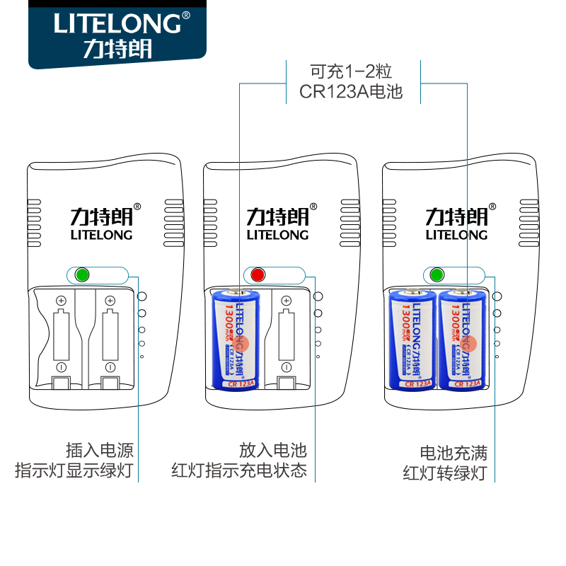 Litelang cr123a battery 3v lithium battery charger set Camera instrumentation Camera flash dedicated