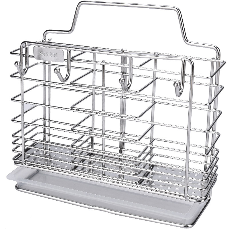Stainless steel chopstick shelf Kitchen household punch-free wall-mounted chopstick tube cage drain chopstick basket Chopstick storage box