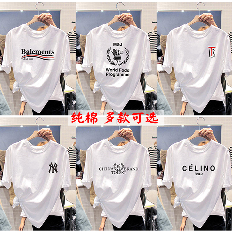 European and American boarder port Wind white pure cotton joint T-shirt female short sleeve loose half sleeve T-shirt with summer clothes Chains