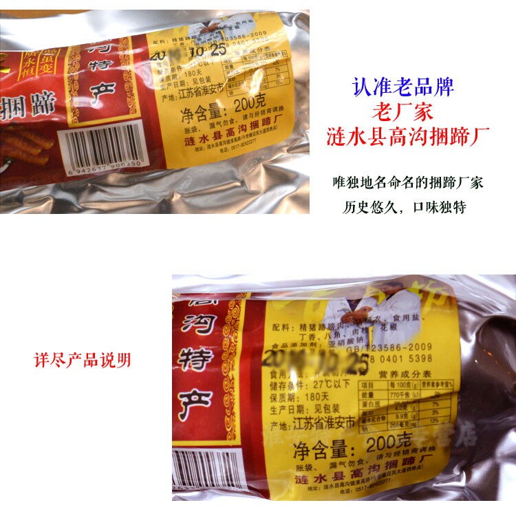 New goods Bundled Hoof Huai'an Specialty Lianshui Gaogou 800g Braised Cooked Food Vacuum Packed Hotel Cold Dish - Taobao