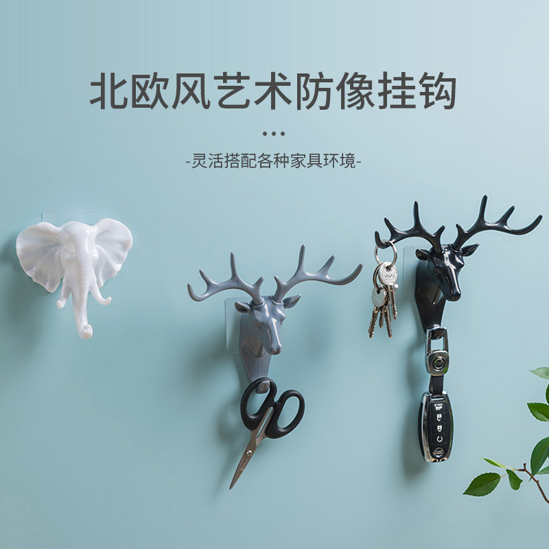 Nordic Creative Deer Corner Slime Hook Cloak Hooded Hook Doorway Wall Decoration Deer Head Hang Key Rack Free Of Punch