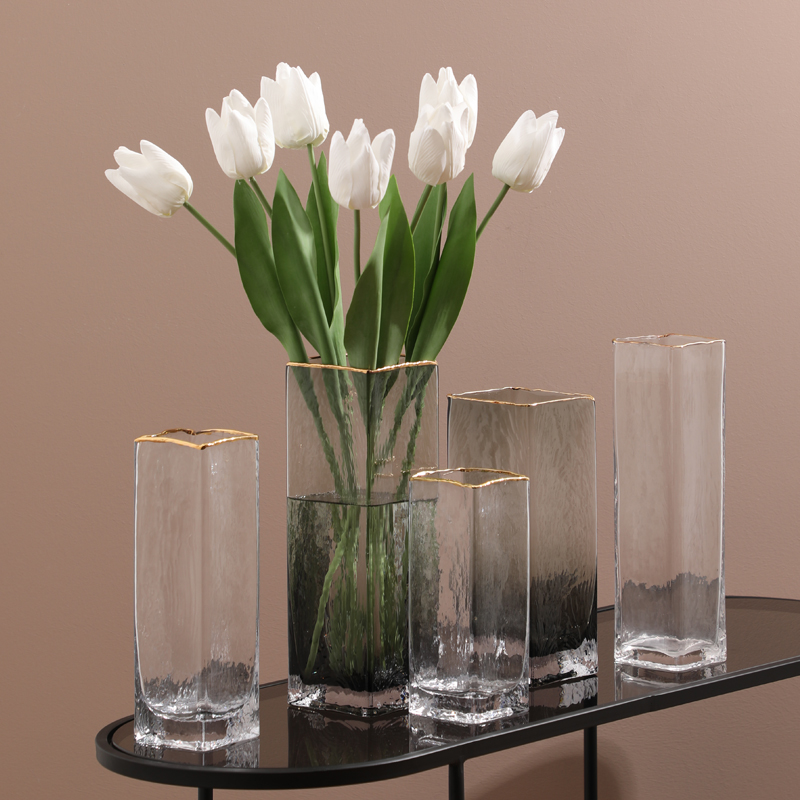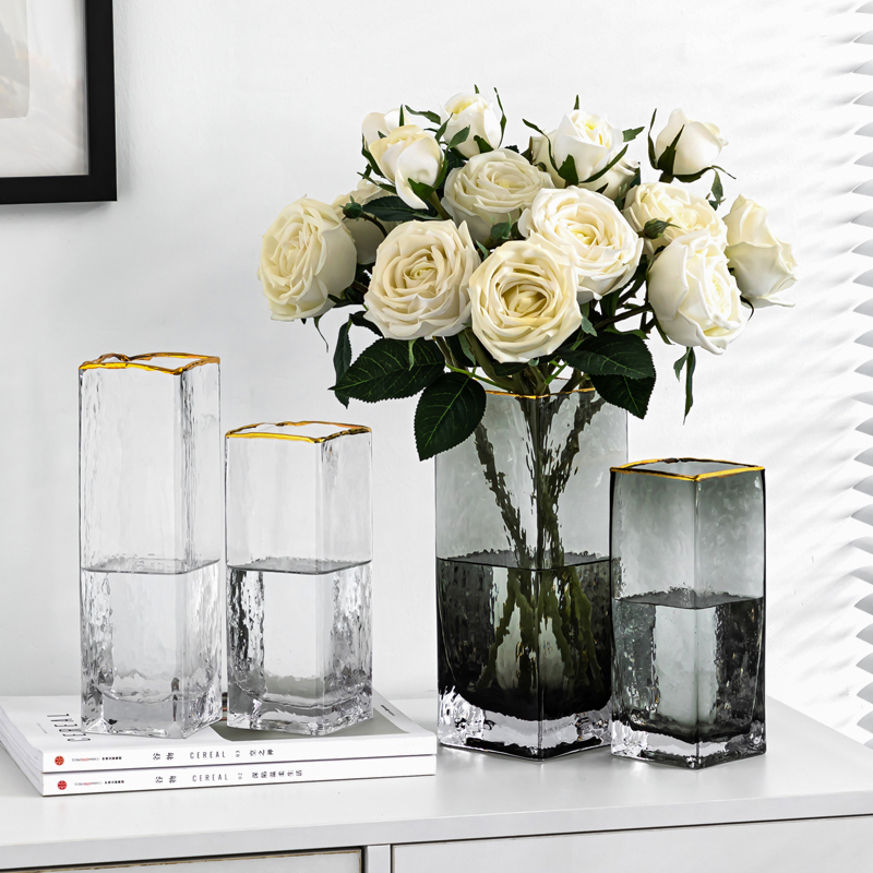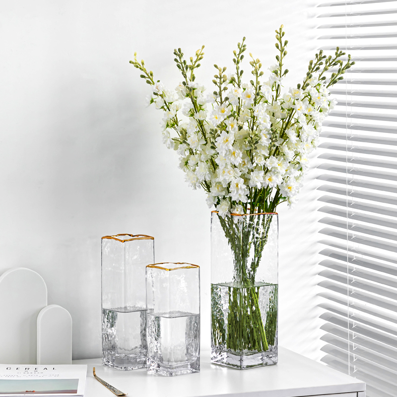 Transparent glass vase hem-shaped living room with flower arrangement water petaway, rich and expensive bamboo horse drunk wood hanging bell light extravagant advanced sensual wind