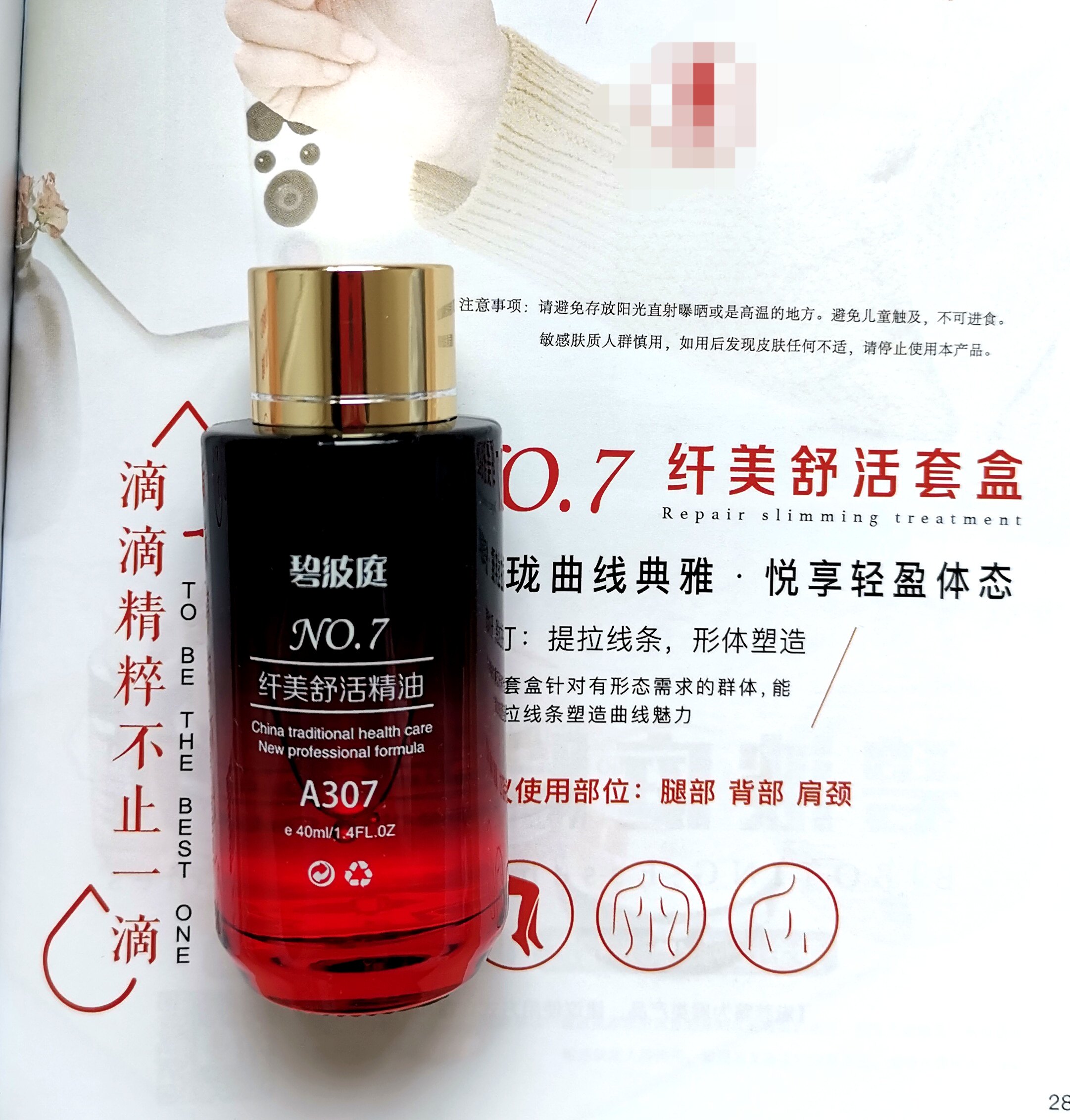 The second bottle of 9 fold shaped body carving Bibo Ting 7# Fenmei Shuhuo essential oil 40ml set box unpacked without packaging