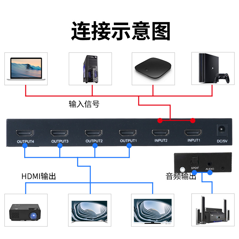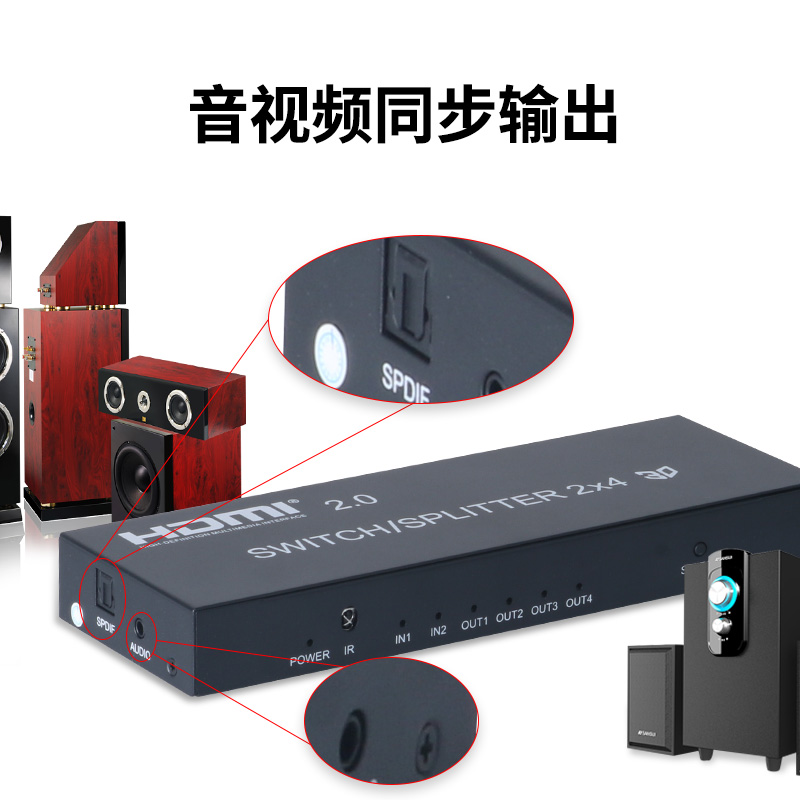 Uber HDMI2 0-in-four-out dispenser 2-4 switcher with optical fiber headphone audio synchronous separator