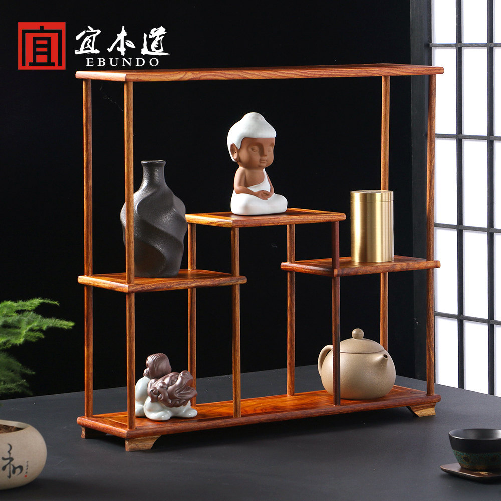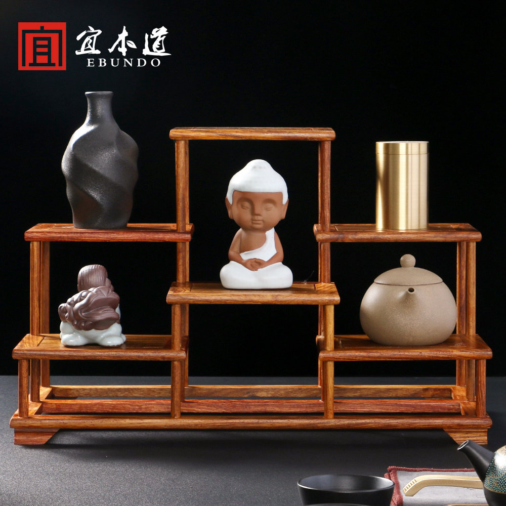Flowers Pear Wood Tea Rack Purple Sand Pot Small Bou Ancient Rack Solid Wood Minima Tea Cup Shelf Tea Set Accessories Containing shelf Show shelf