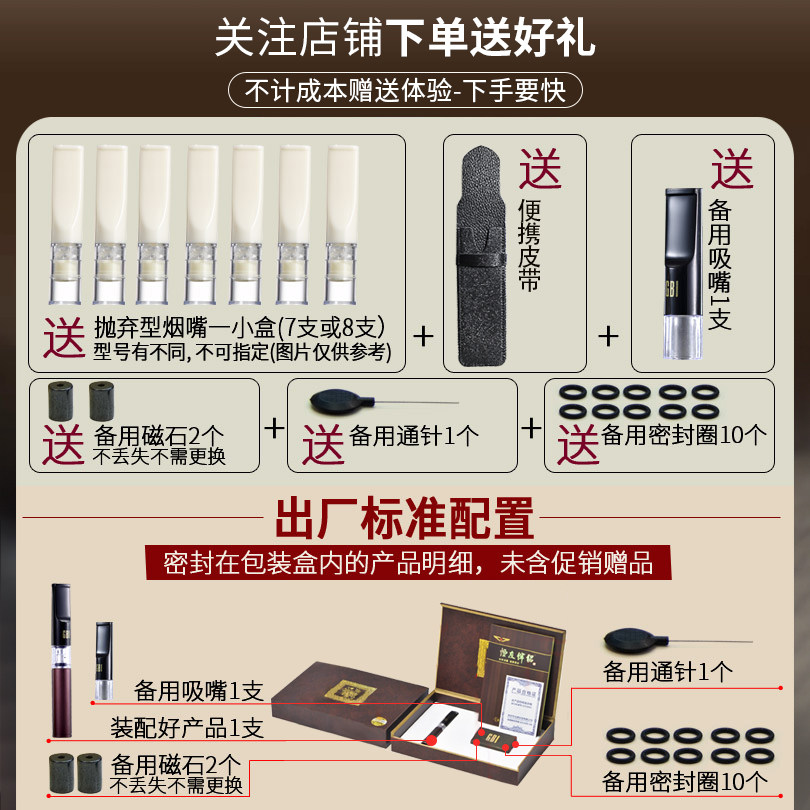 Large ship metal cigarette holder men and women smoking special triple filter cycle type washable filter tar filter