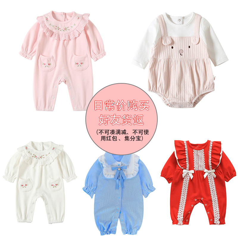 Baby clothes Female baby princess dress Autumn dress Foreign school spring and autumn climbing clothes bag fart clothes Full moon clothes 100 days jumpsuit