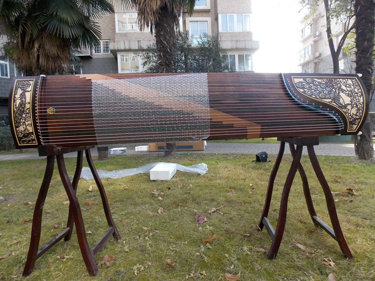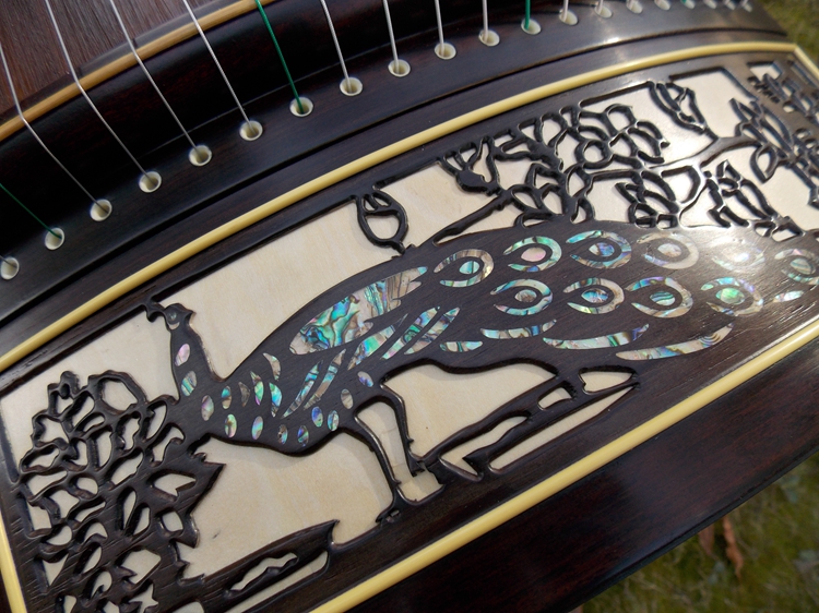 Dunhuang Guzheng 695DL Special selection of Indonesian black acid branches Mumei Zhuang Qin Baie carved peacock pattern One factory-Taobao