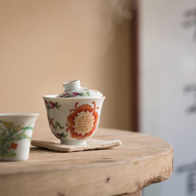 Five Fufu Shouqing Scented Self to dark fragrant floating Buddha Lid Bowl Qingxiang Self-Come (one cover of two cups) (One) Qingxiang Self-Come (one cover of two cups) (two) Five Fuchou (one cover bowl for two cups) imitation of ancient glaze