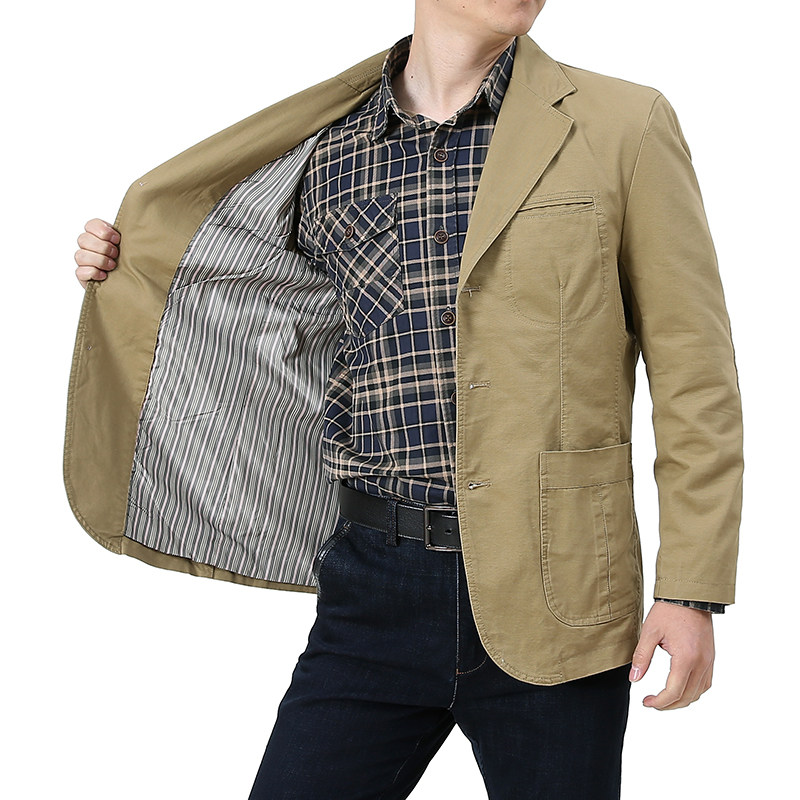 2021 spring and autumn casual cotton jacket men's suit loose middle-aged plus-size version of the small suit dad suit trend