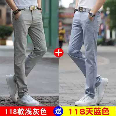 Ice silk linen men's men's casual long pants straight loose business ultra-thin summer pants working middle-aged dad