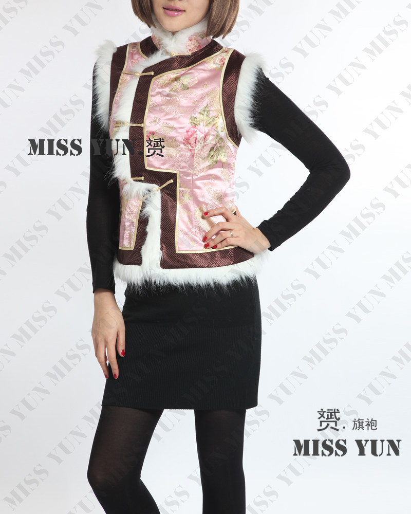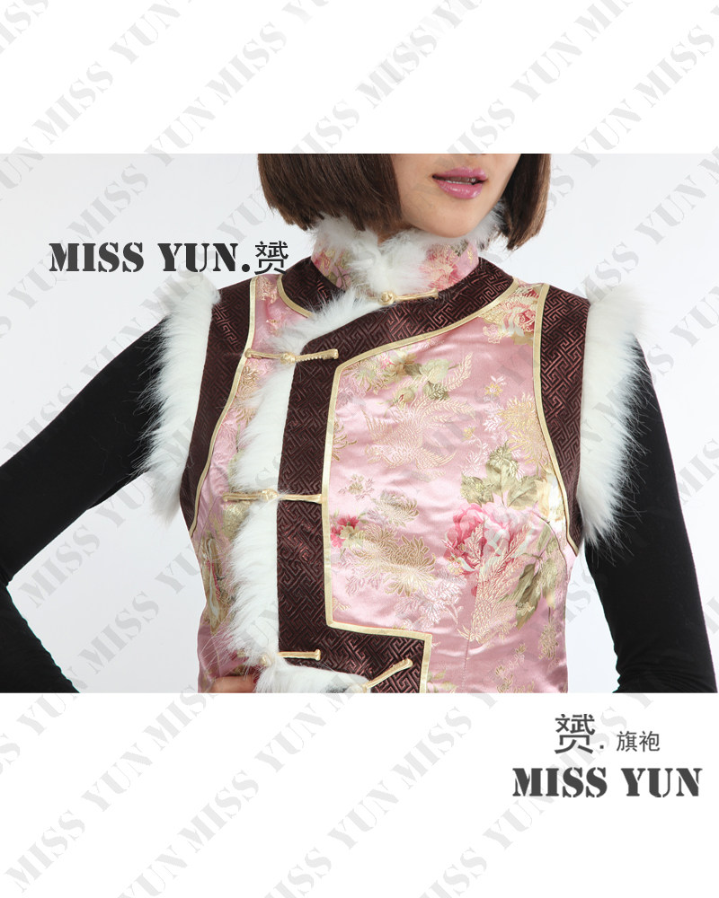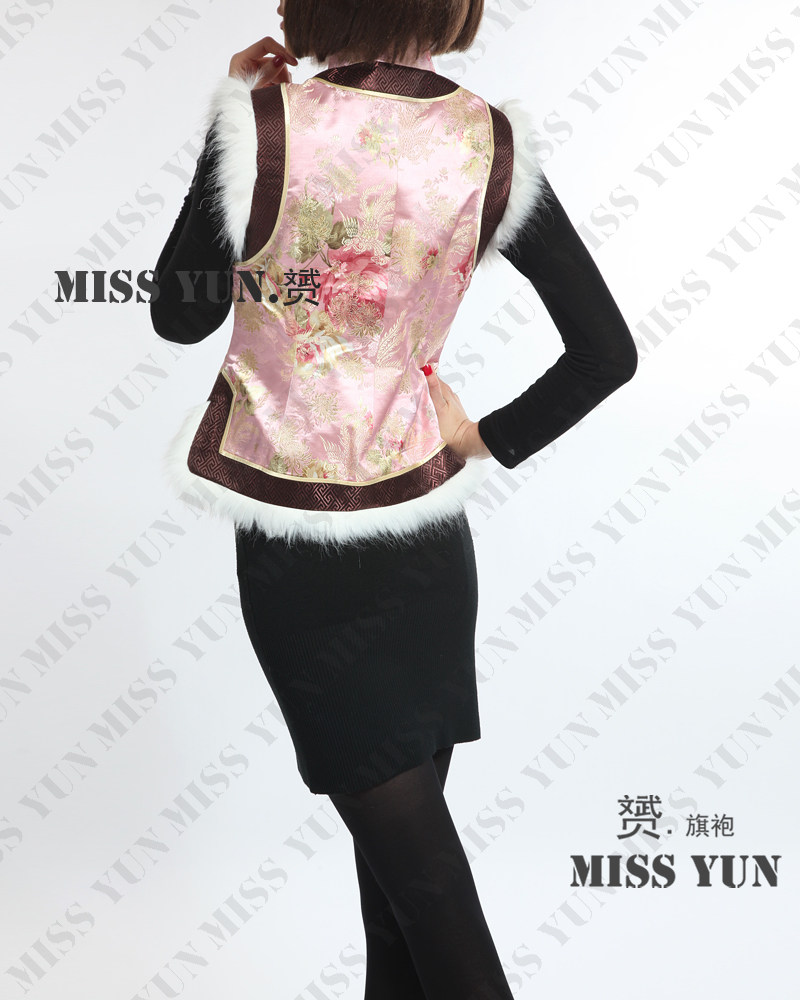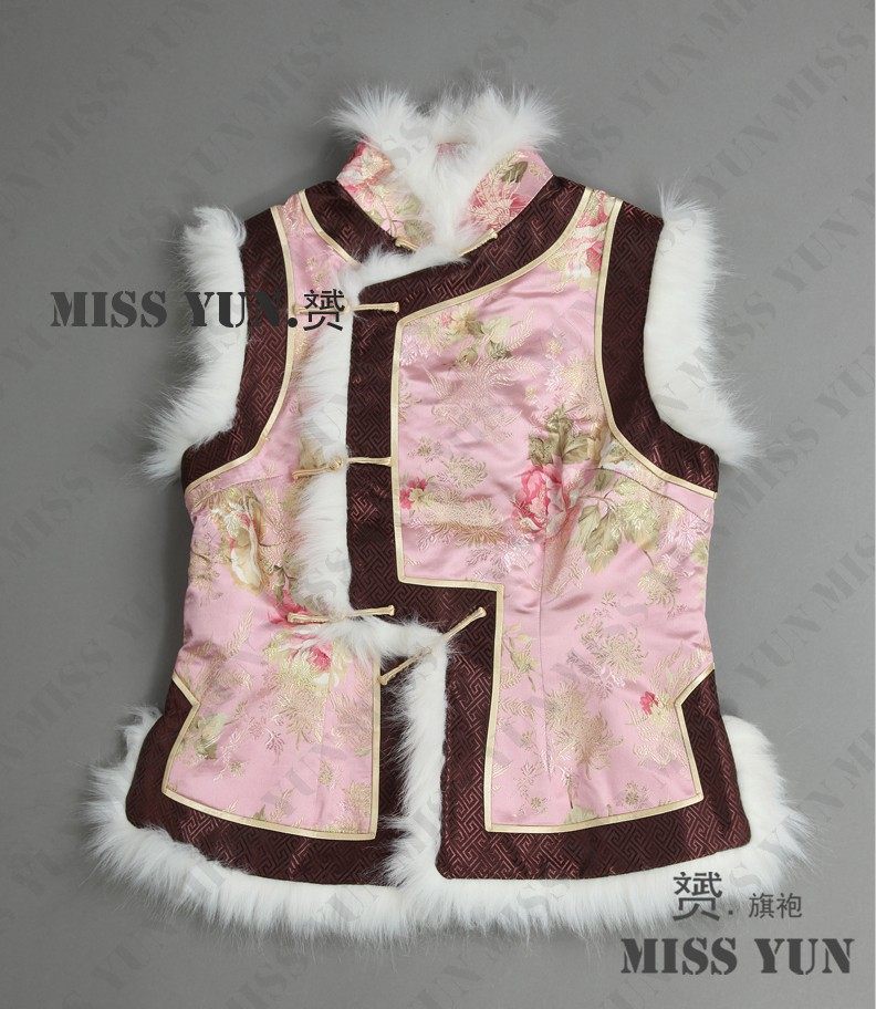 Pink Peony Brocade Fleece Vest Padded Jacket Winter Cheongsam Ladies Checkered Wide-brimmed Cheongsam Vest