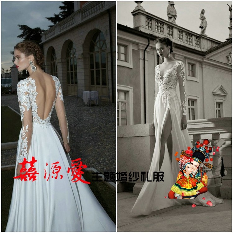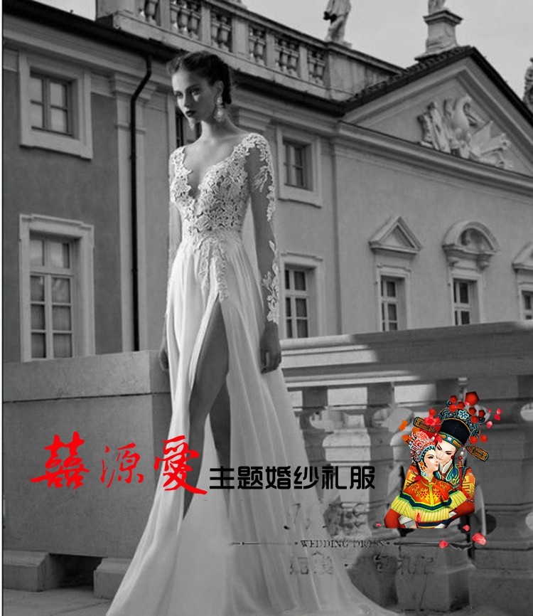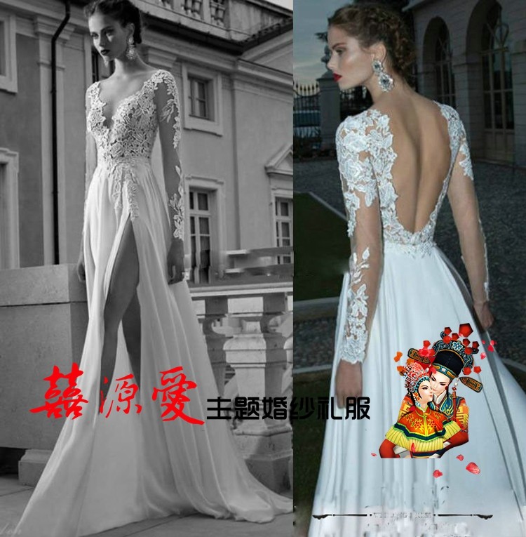 European and American Style Embroidery Dew Back Sexy Lace Snowspun Trailing Shadow Building photo Exterior View Gown Open Fork Snowspun Gown-Taobao