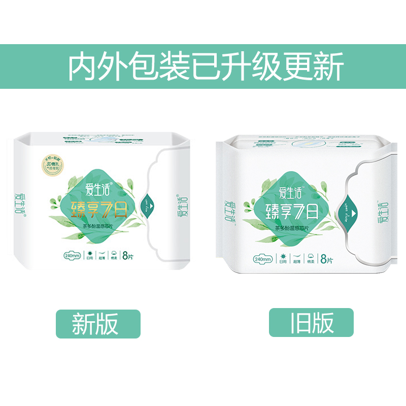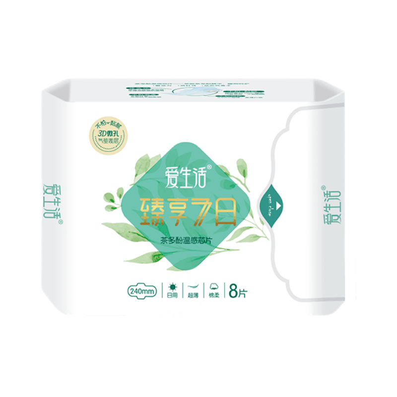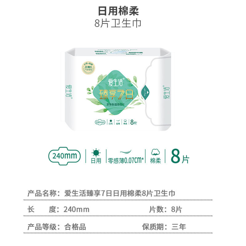 Green leaf love life to enjoy 7th ultra-thin daily soft cotton 8 pieces sanitary cotton ultra slim breathable aunt towel 240mm