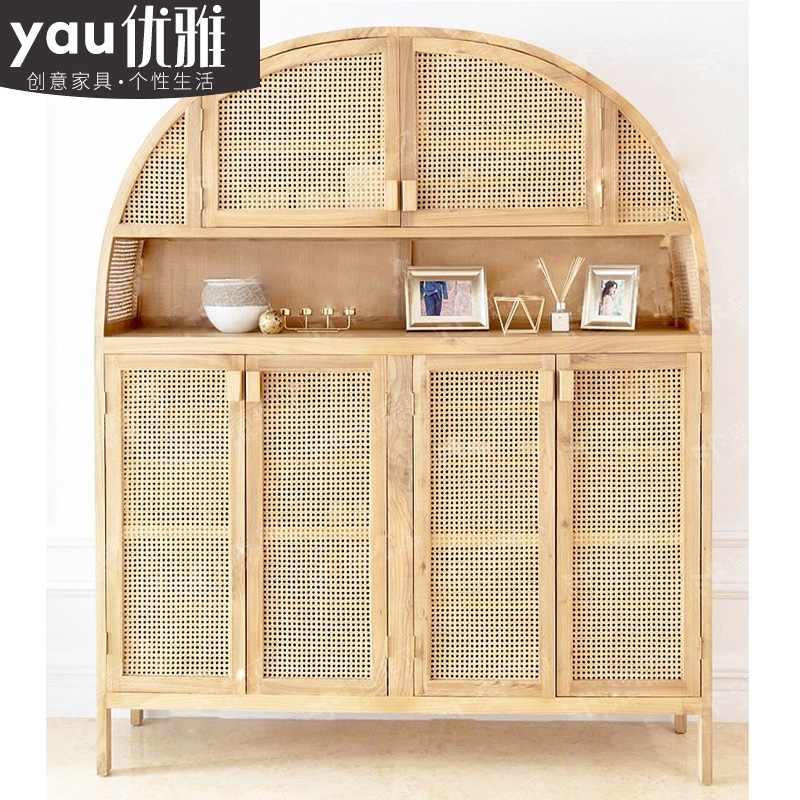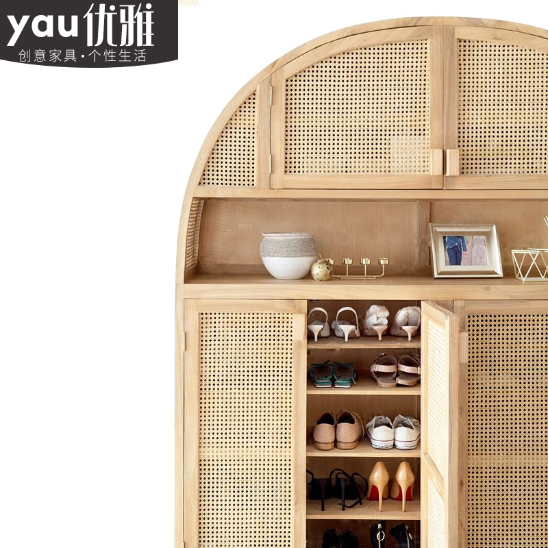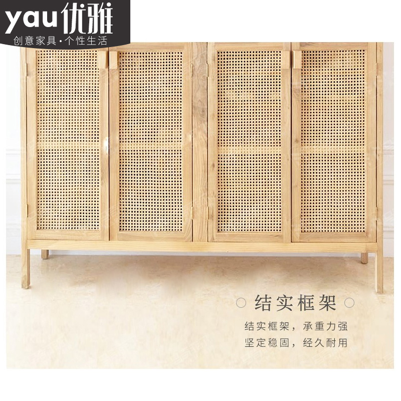 Nordic solid wood rattan shoe cabinet home door porch cabinet partition hotel homestay multi-functional locker