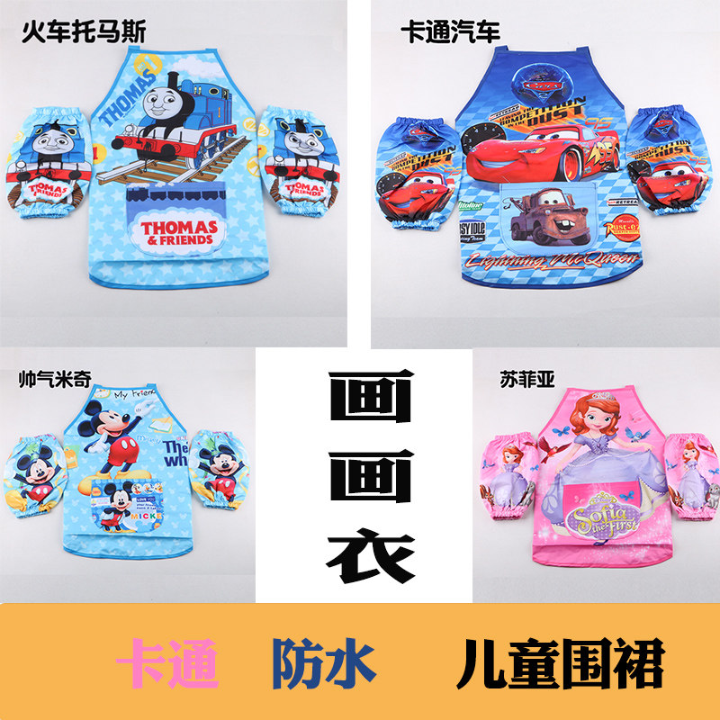 Children's cover Apron sleeve cartoon printed waterproof clothes for boys and girls vest-belt children apron
