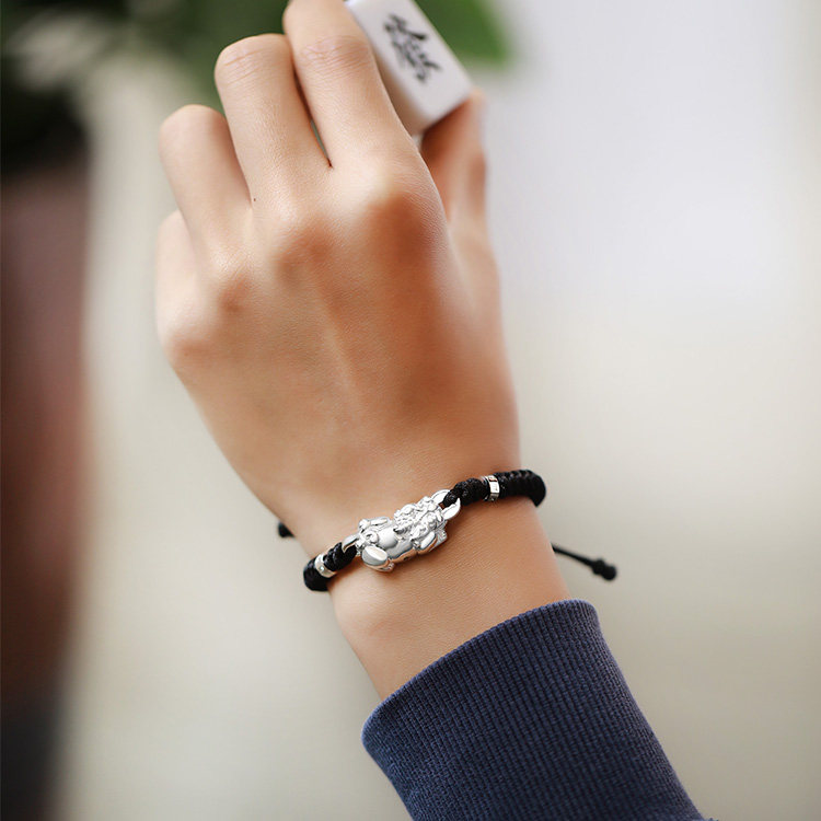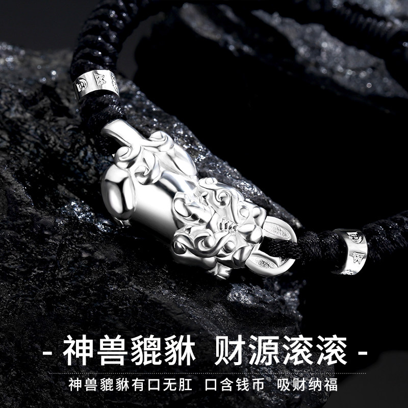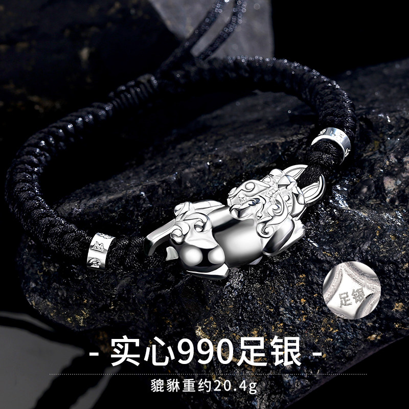 Leopard Hands Condensed Men's Pure Silver Hand Woven Rope Bully Personality Tide Simple And Generous Leather Cummy Hands To Send Boyfriend
